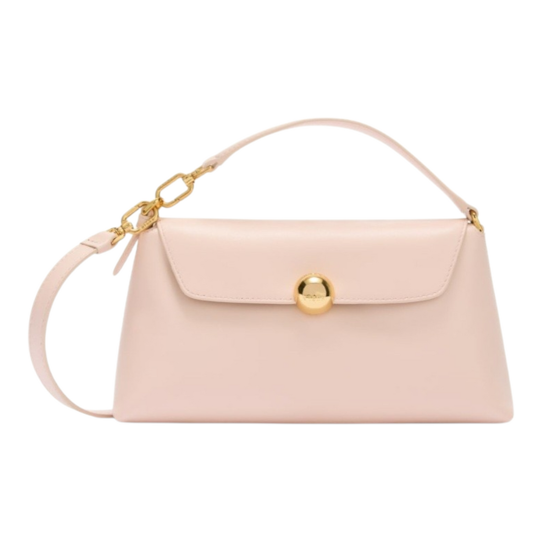 Borsa di pelle di vitello Rosa cipria Pelle Chiusura a girello Manico e Tracolla Dettaglio...