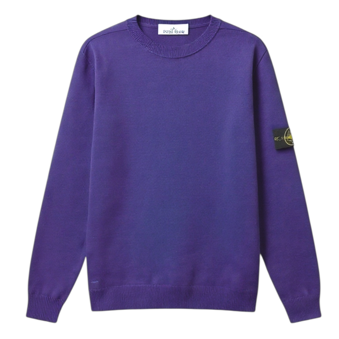 Descrizione- Maglione girocollo in lana d'agnello finezza 7- Girocollo e polsini a costine- Badge Stone...