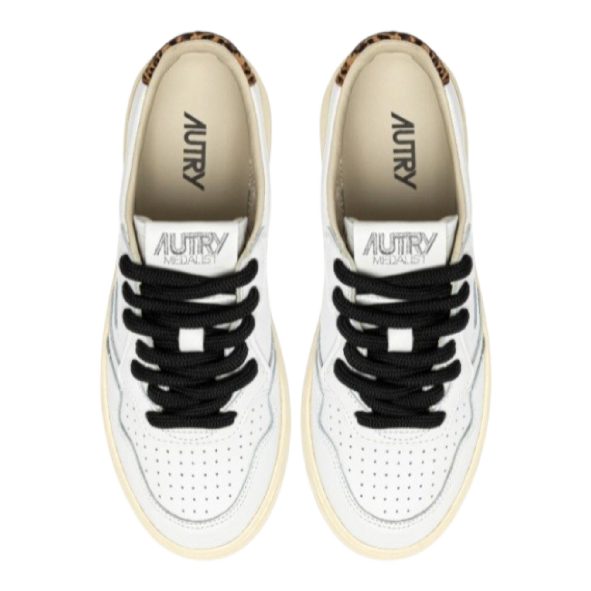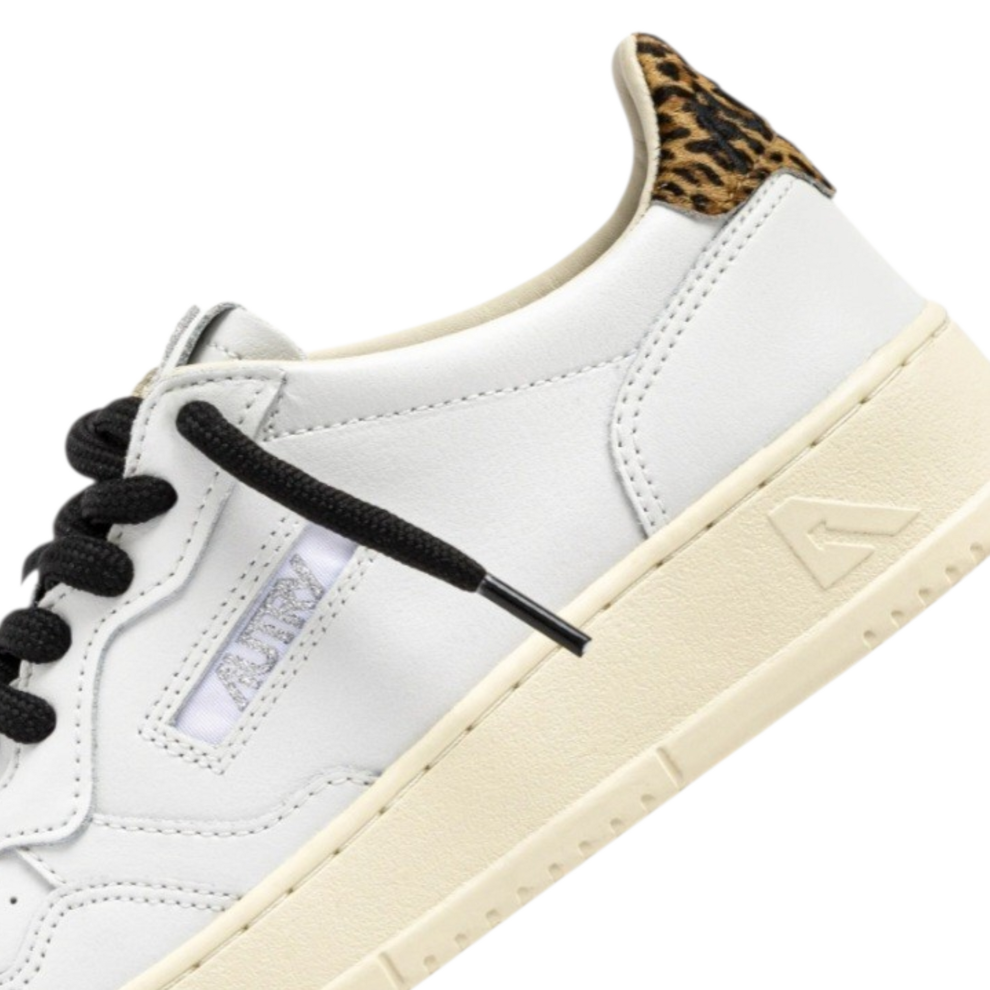 Il dettaglio effetto cavallino stampa animalier che decora il tallone è personalizzato con il logo Autry ricamato.