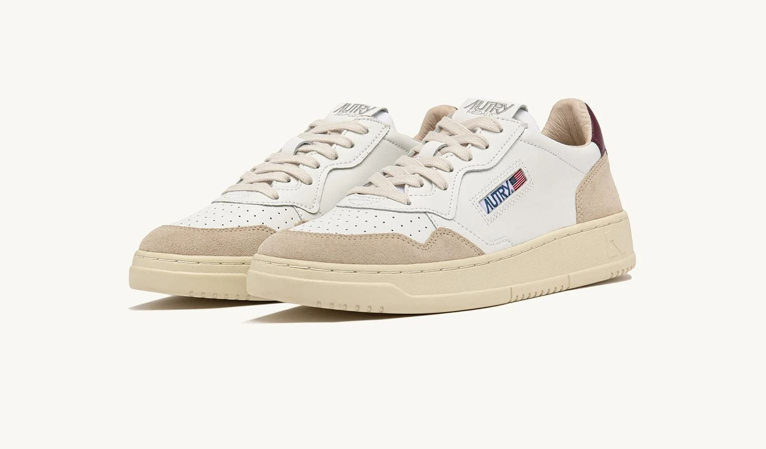 Autry | LS03 Medalist Low in Pelle Bianco e Burgundy e Suede Beige