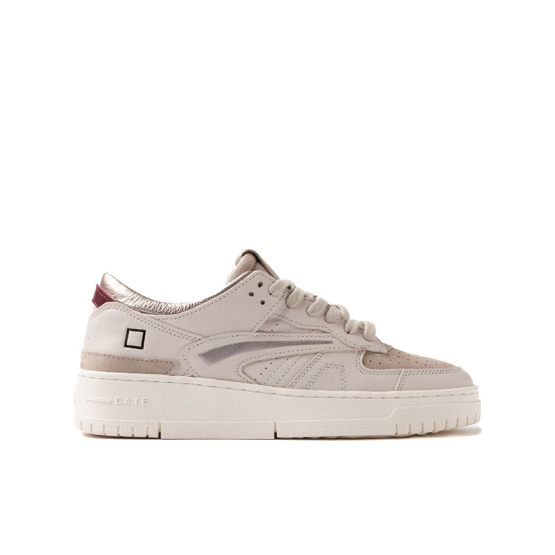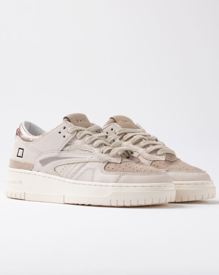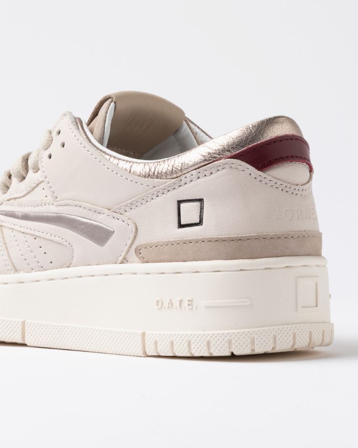 Sneakers bassa in pelle colore avorio con inserti in camoscio colore taupe.